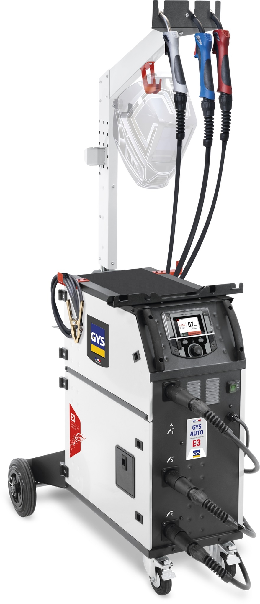 E3 GYS AUTO - это однофазный синергетический сварочный аппарат MIG/MAG на 200А с 3 встроенными механизмами подачи проволоки, специально разработанный для кузовщиков. Оснащенный интуитивно понятным цветным интерфейсом, он идеально сваривает сталь и алюминий, даже тонколистовую сталь. Его синергетические возможности также включают пайку проволокой CuSi3 и CuAl8.