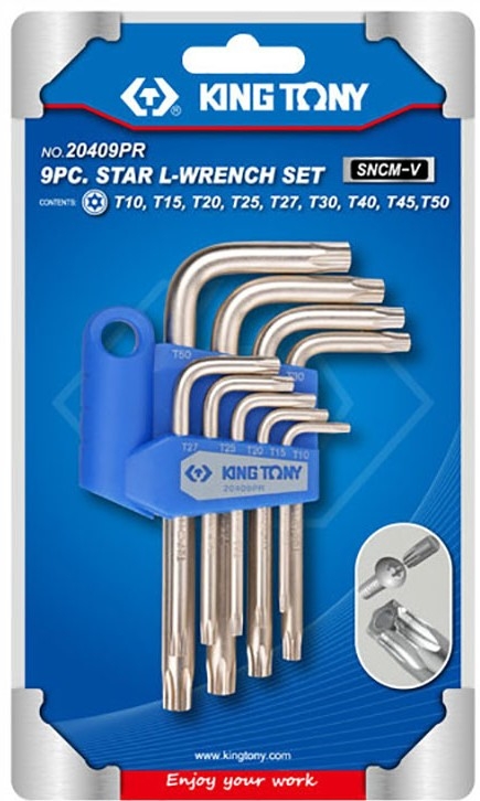 Набор ключей TORX L-образных с отверстием Т10-Т50, 9 предм.