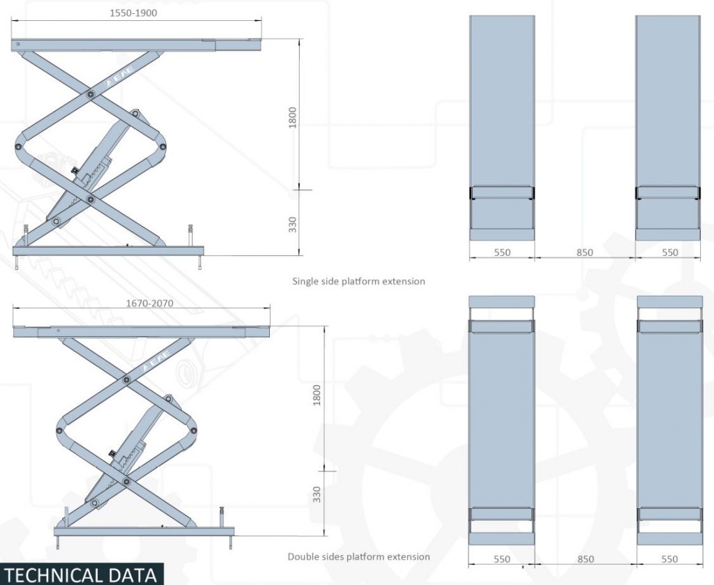 | Длина платформы 1 | 1550 - 1900 мм |
