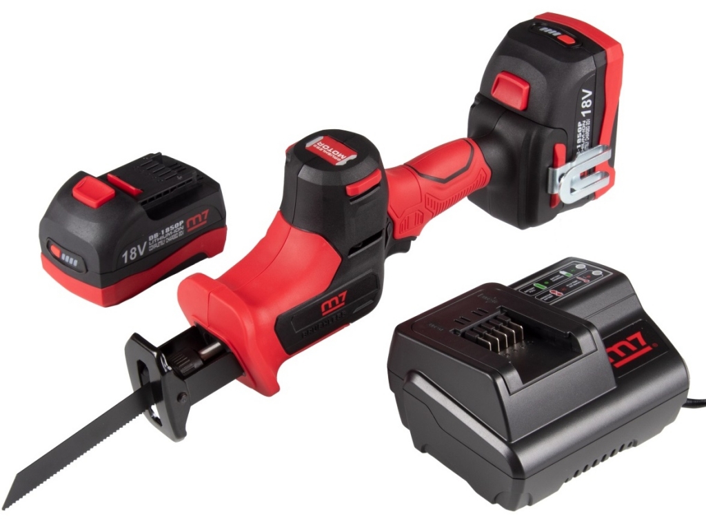 Аккумуляторная сабельная пила 18В (пила, зарядное устройство, аккумулятор 18В 5Ач - 2 шт.)